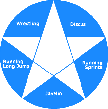 The Pentathlon educates the individual from the feet to the head. One can see that each discipline develops a part of the body starting with the feet, then calves and thighs, moving to the upper torso and ending with head and upper limbs. But together they form a synergistic training that promotes holistic human development. Pentathlon means “five contests” and refers to 1) running, 2) jumping, 3) wrestling, 4) discus throwing, and 5) javelin throwing. These disciplines were the major curriculum of an ancient education that united the body, soul, and spirit thus providing a physical, psychological, and moral training for youth. These disciplines and this event was central to both the Olympic Games and the Pythian Games. Click below on the particular exercises to see the virtues and moral development that the Pentathlon strove to cultivate.